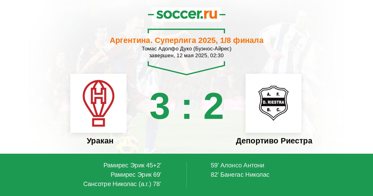| Уракан | 0:1 | 0:0 | 0:1 |