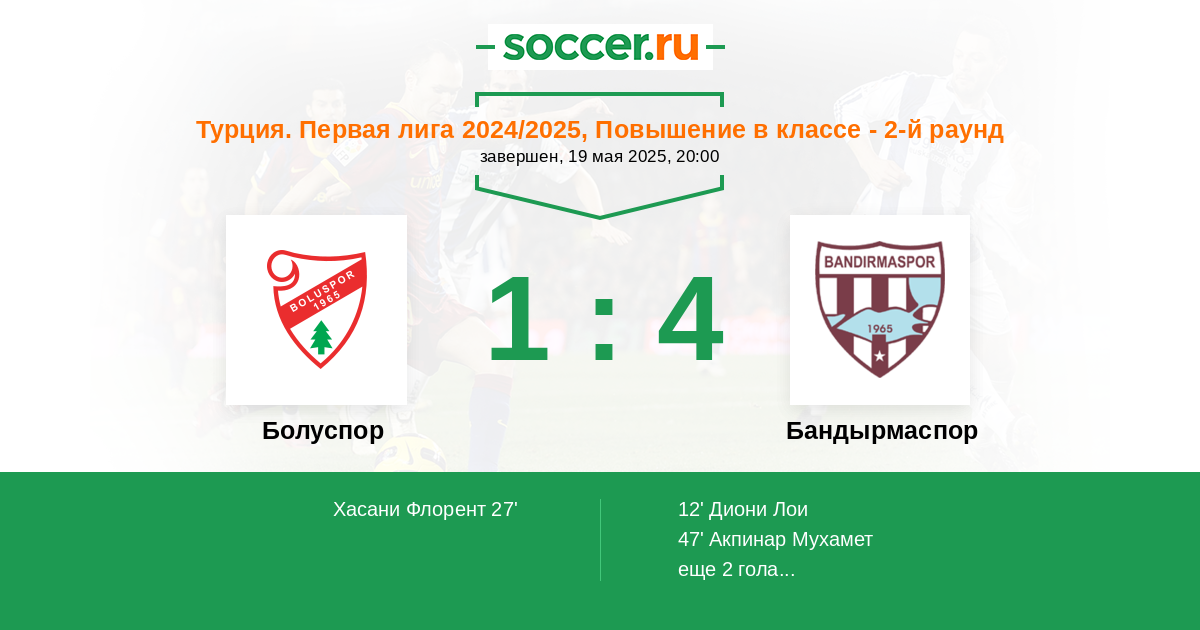| Болуспор | 12:17 | 8:5 | 4:12 |