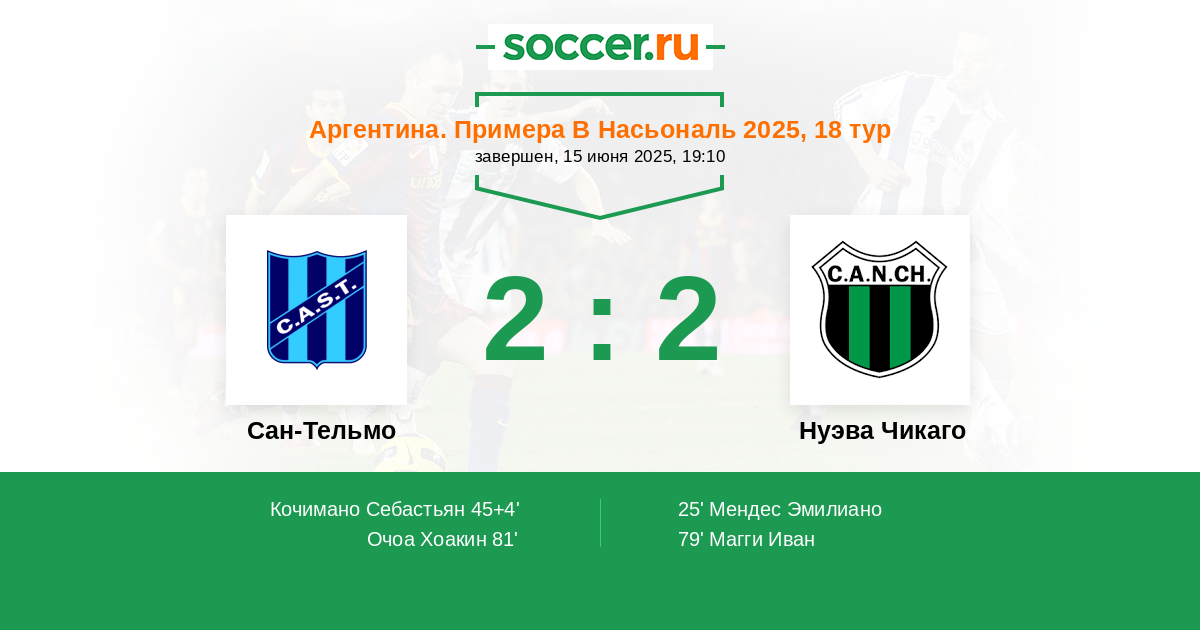 | Аргентина. Примера Б Метро | 8 | 2 | 4 | 2 |