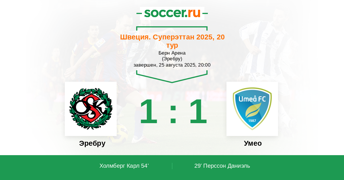 | Эребру | 1:1 | 0:0 | 1:1 |