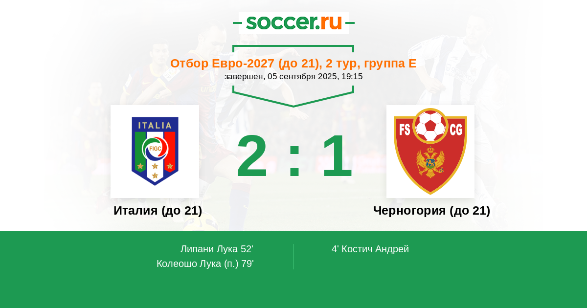 | Италия (до 21) | 6:2 | 1:0 | 5:2 |