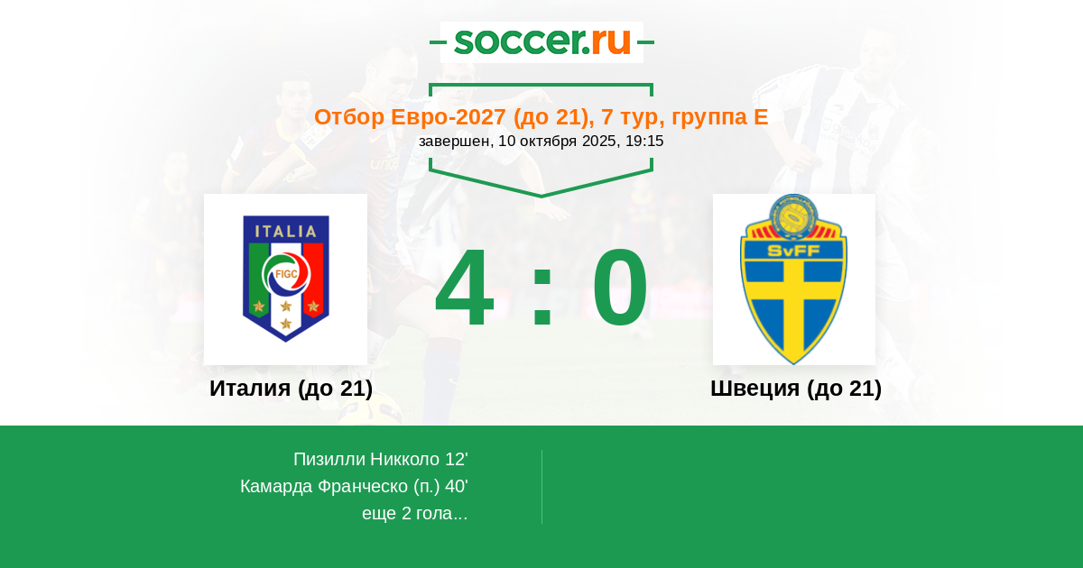 | Италия (до 21) | Швеция (до 21) | |