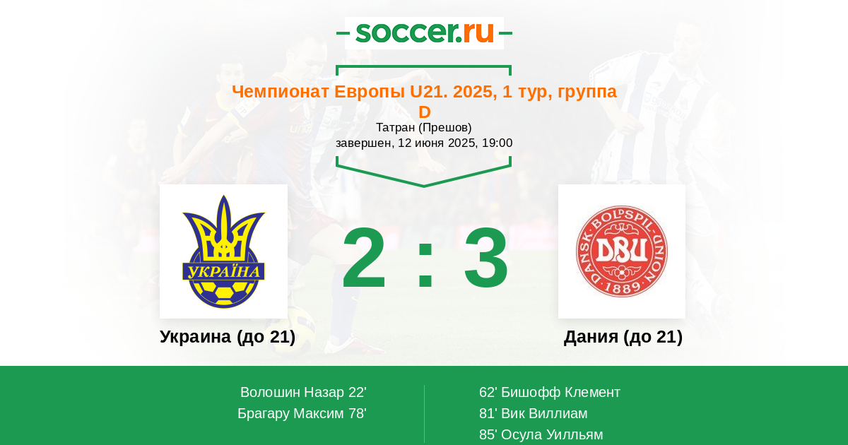 Дания (до 21) 6:5 3:3 3:2