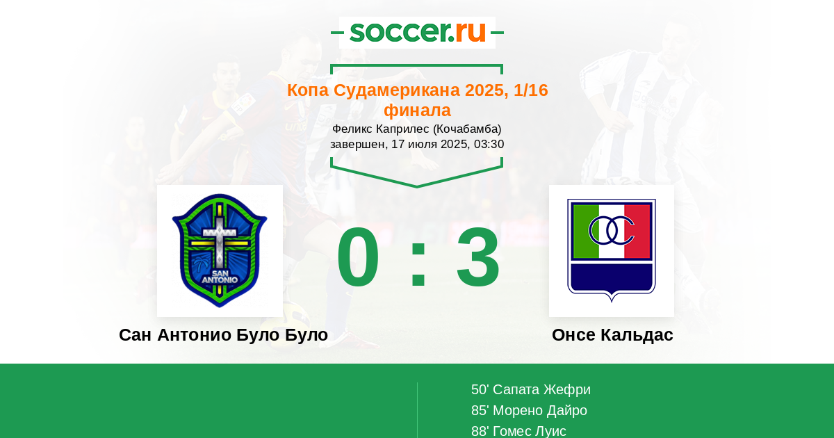 | Сан Антонио Було Було | Онсе Кальдас | |