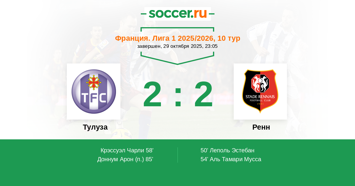 | Ренн | 69:56 | 43:30 | 26:26 |