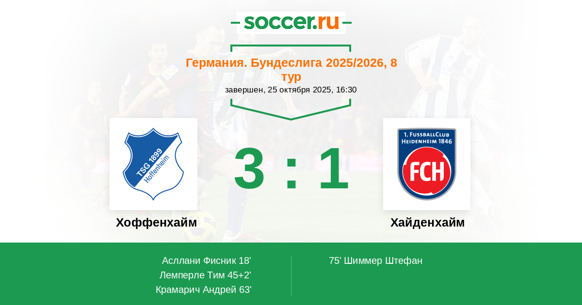 | Хоффенхайм | 5:5 | 2:2 | 3:3 |