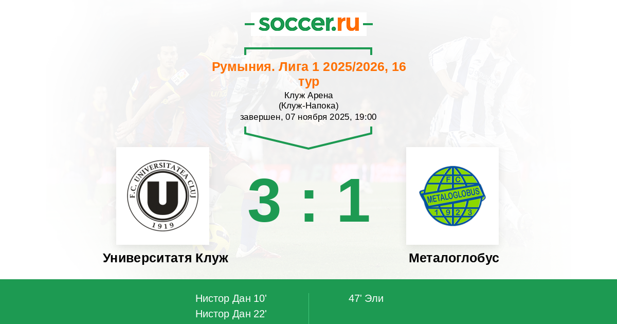 | Университатя Клуж | Металоглобус | |