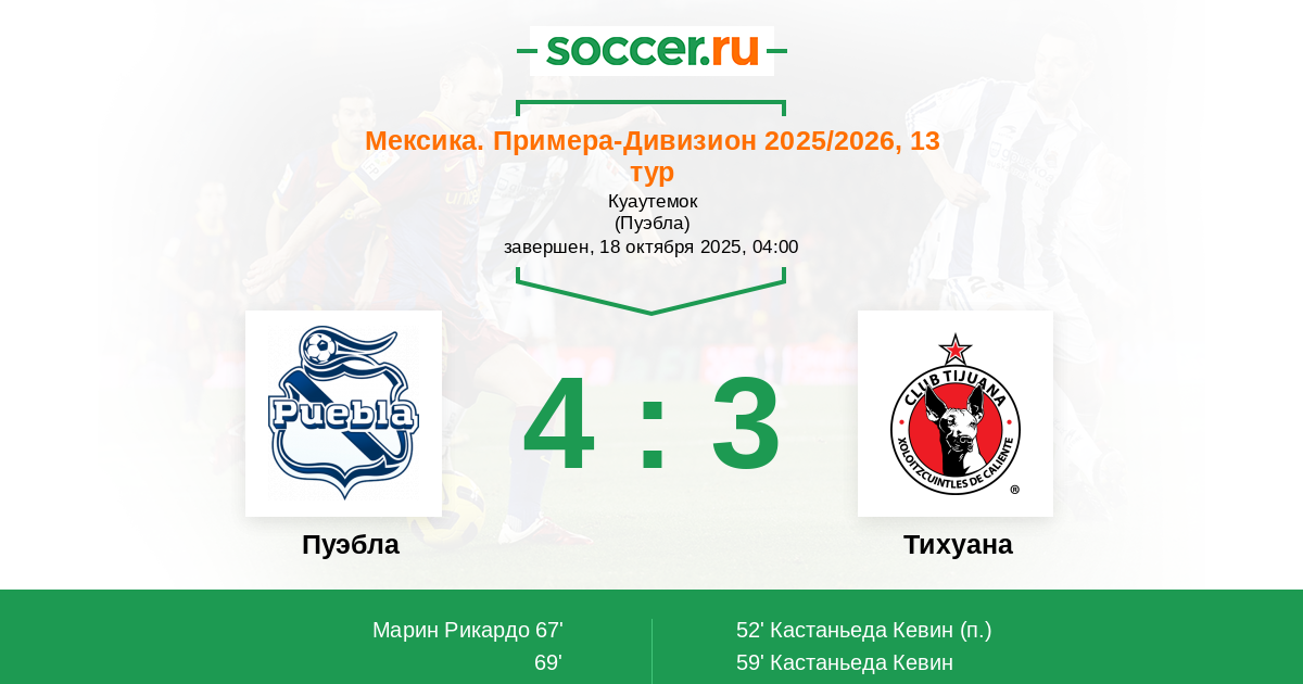 | Пуэбла | 42:46 | 30:17 | 12:29 |