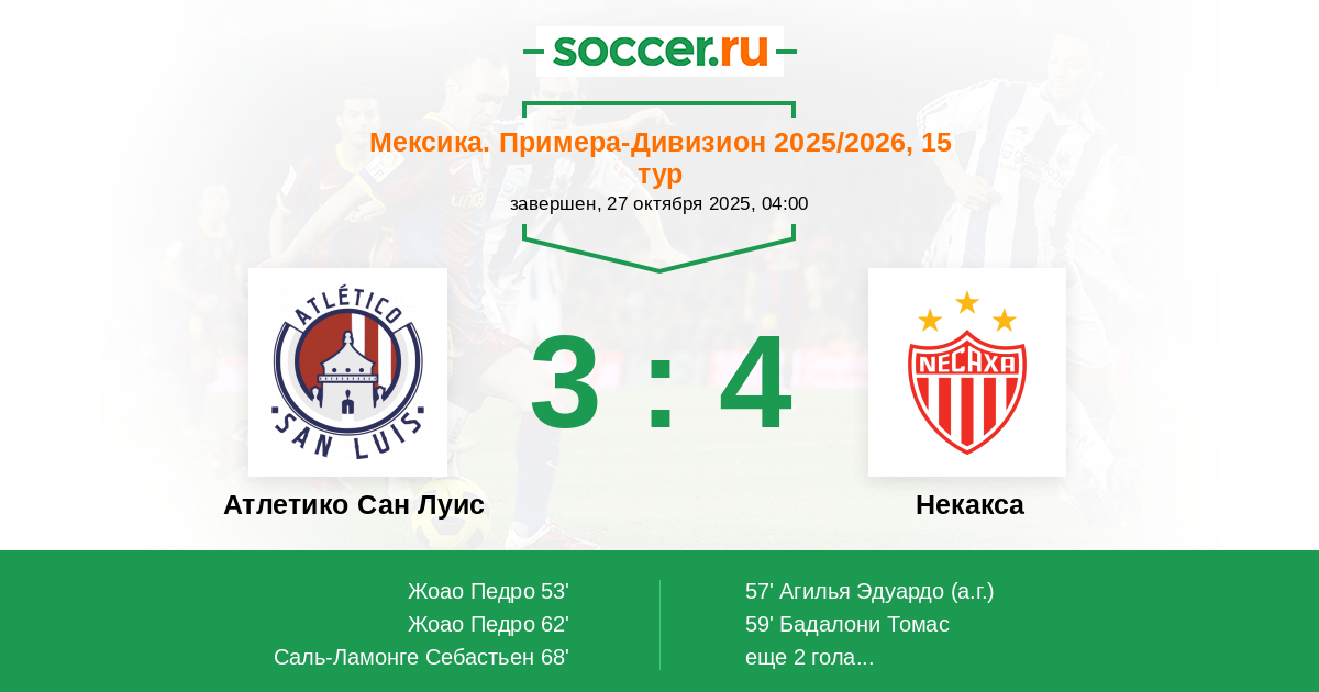 | Атлетико Сан Луис | 18:31 | 9:14 | 9:17 |