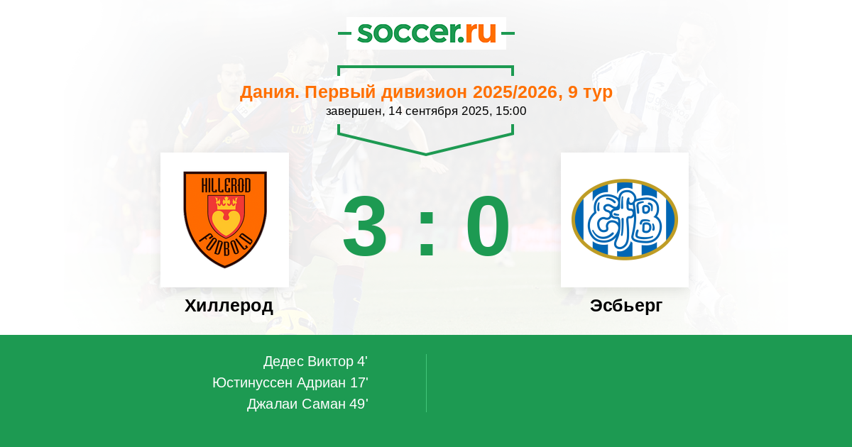 | Хиллерод | 2:3 | 1:2 | 1:1 |
