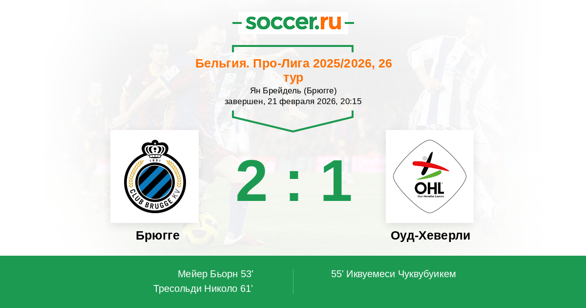 | Брюгге | 44:18 | 23:5 | 21:13 |