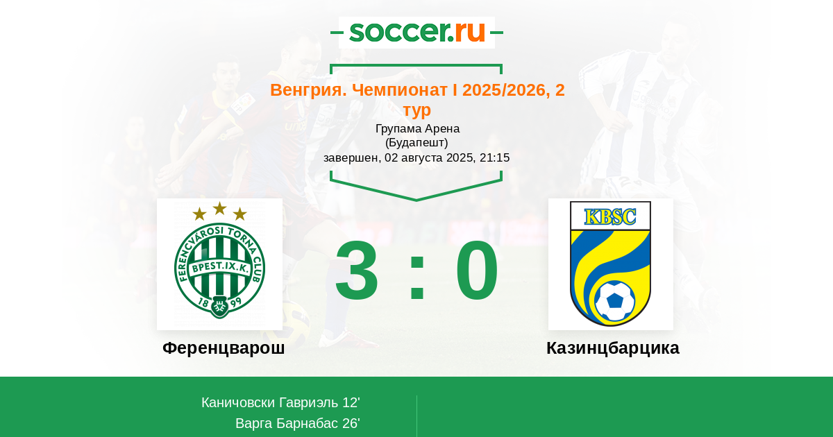 Ференцварош 3:0 Кишварда