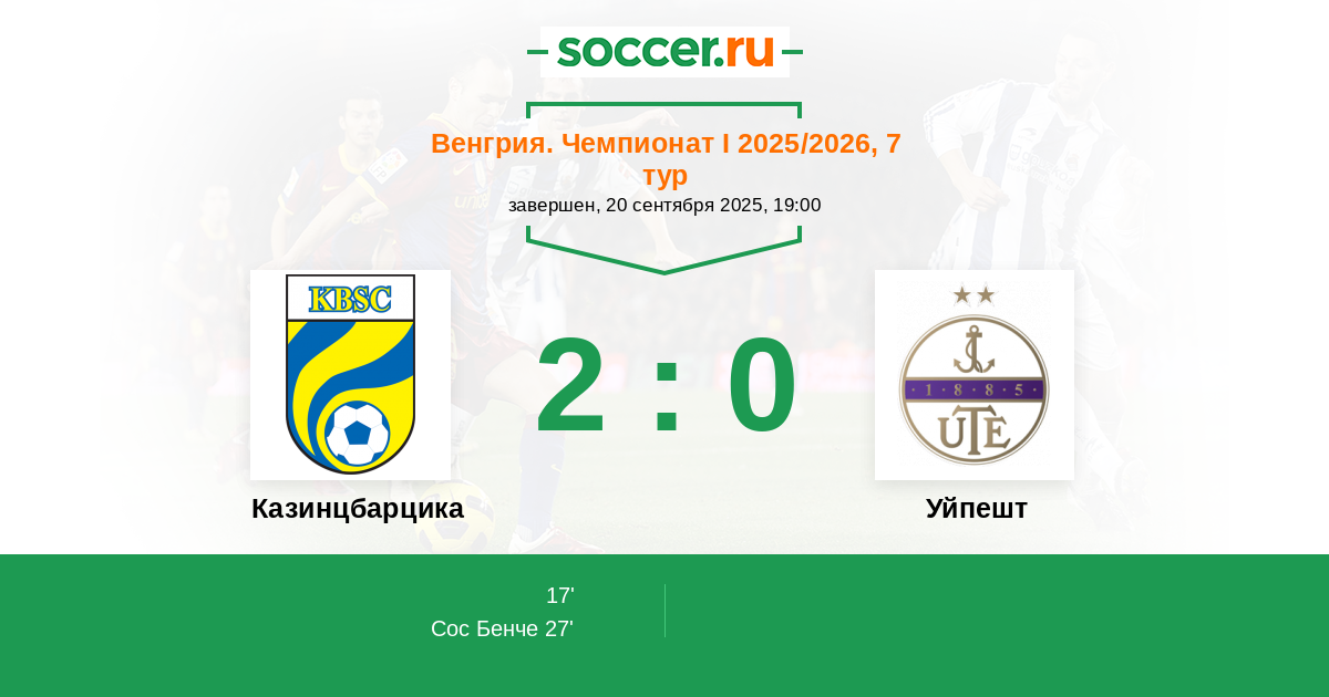 | Казинцбарцика | 1:2 | 0:0 | 1:2 |