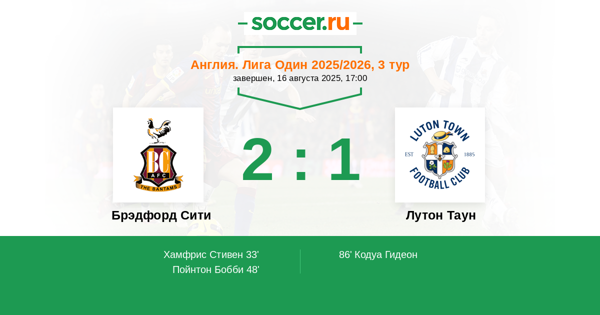 | Брэдфорд Сити | 1:7 | 0:1 | 1:6 |