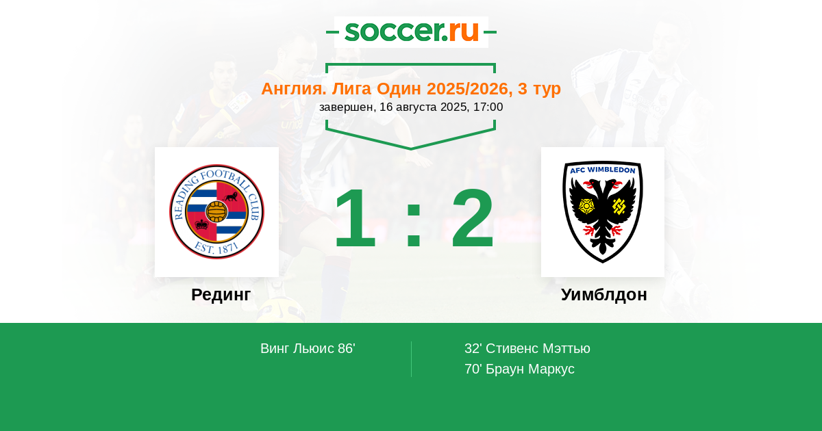 | Рединг | Уимблдон | |