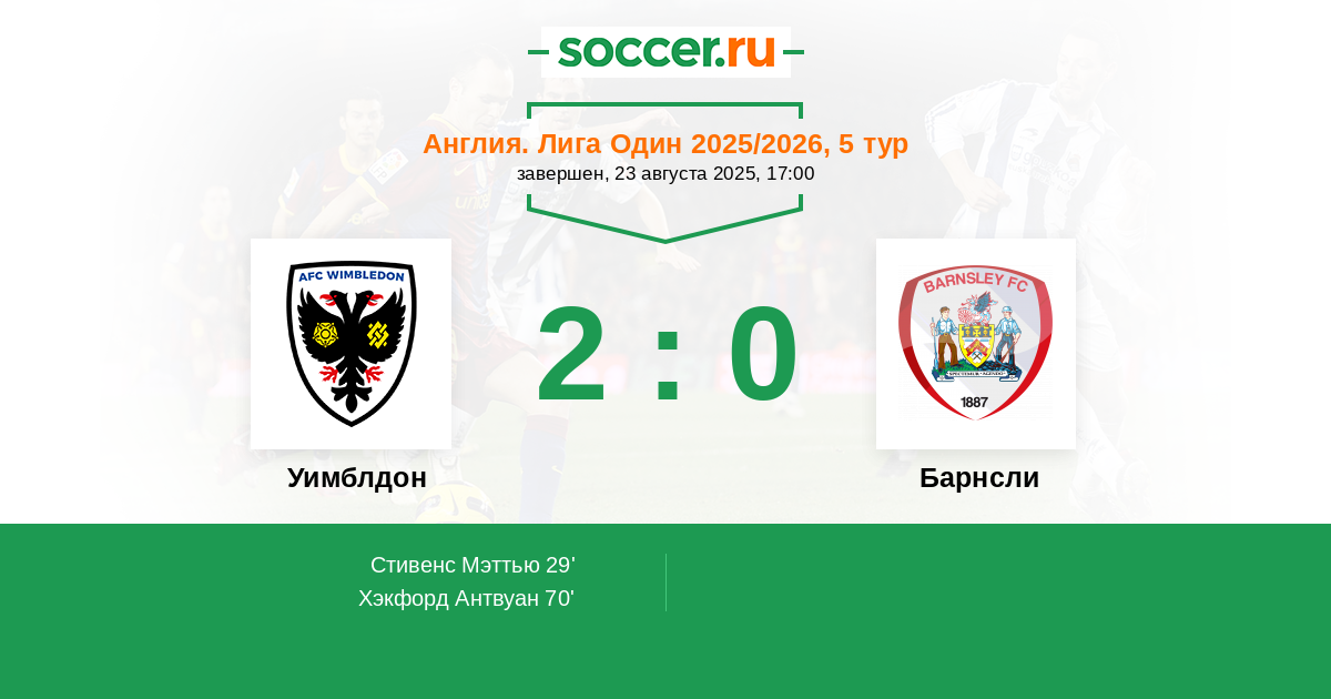 | Уимблдон | Барнсли | |