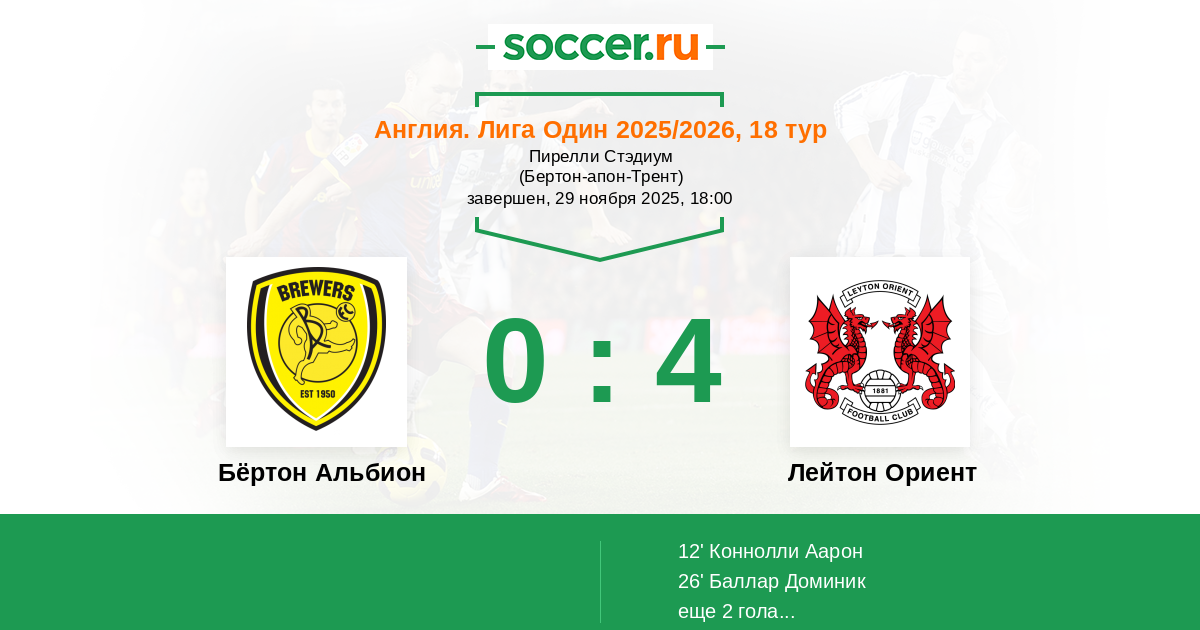 | Бёртон Альбион | Лейтон Ориент | |