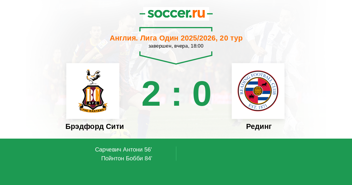 | Брэдфорд Сити | 0:3 | 0:0 | 0:3 |