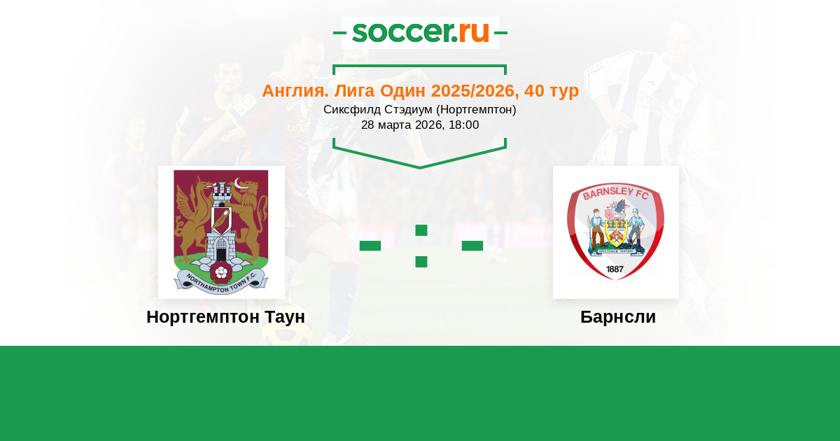 | Нортгемптон Таун | 9:10 | 2:4 | 7:6 |