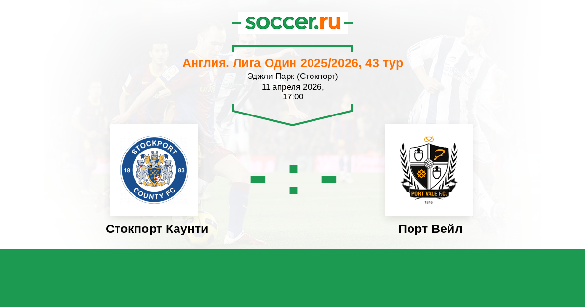 | Стокпорт Каунти | 3:0 | 0:0 | 3:0 |