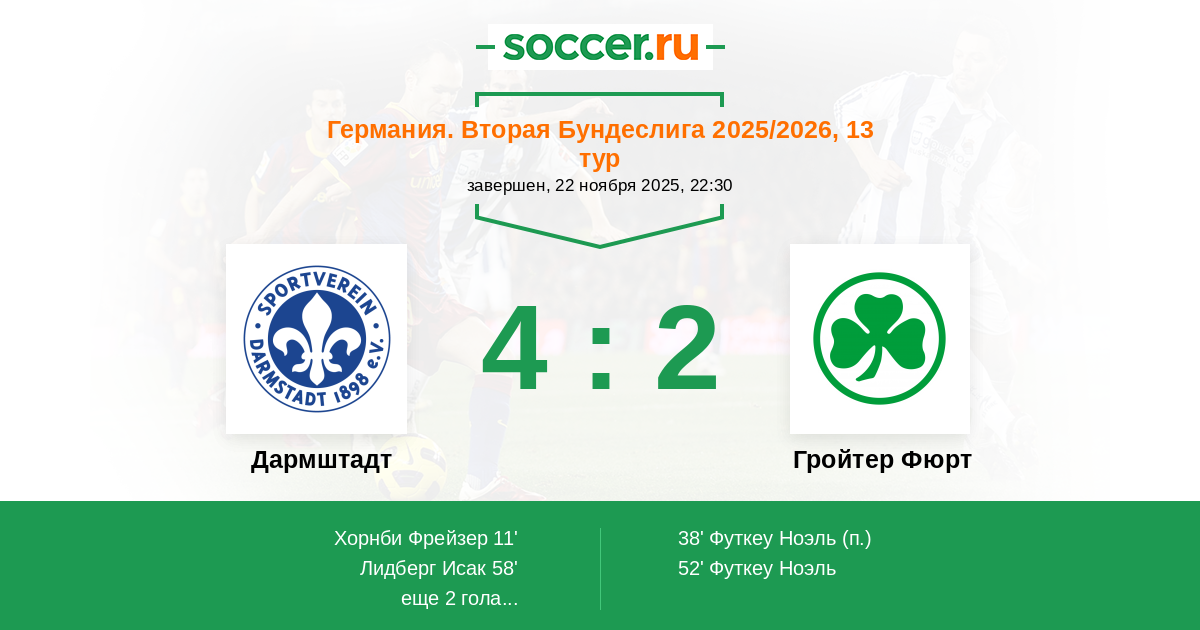| Дармштадт | 23:21 | 11:9 | 12:12 |