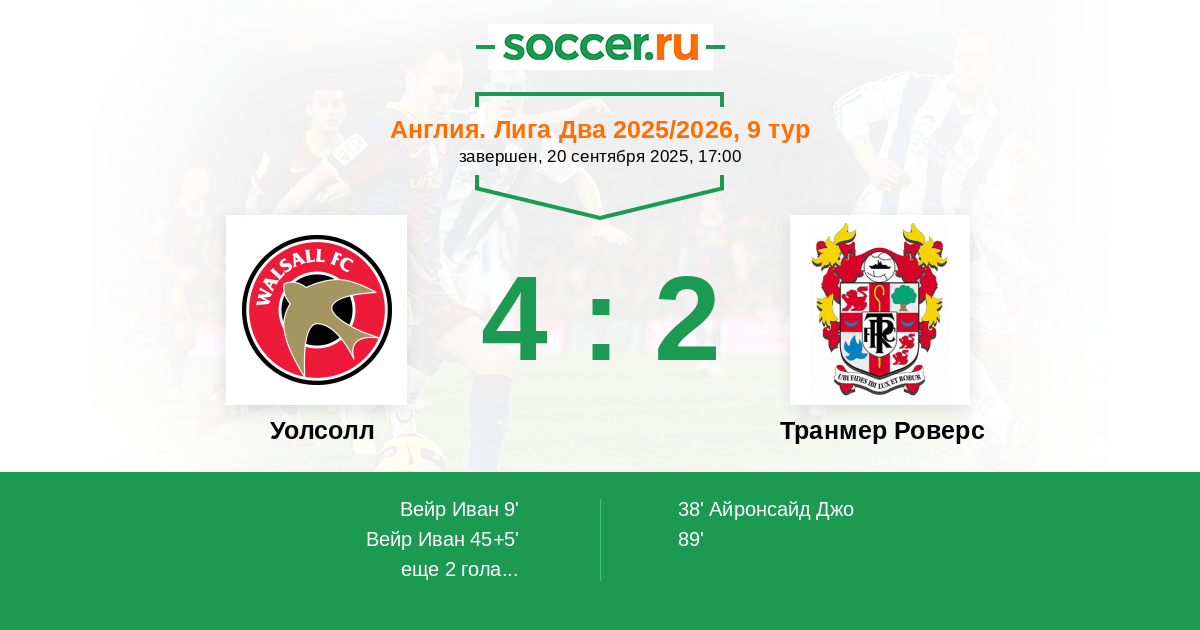 | Уолсолл | Транмер Роверс | |