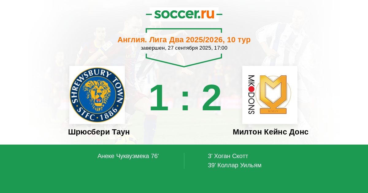 | Шрюсбери Таун | Милтон Кейнс Донс | |