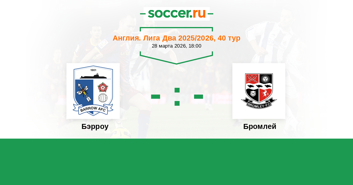 | Бромлей | 6:5 | 3:2 | 3:3 |