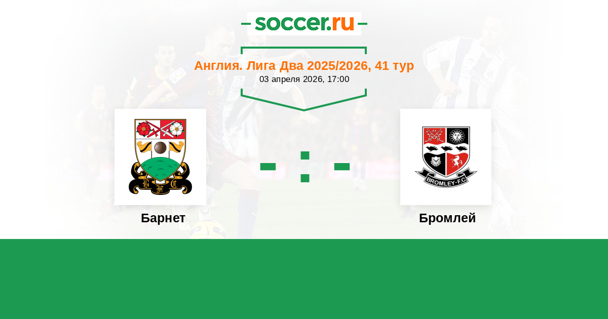 | Бромлей | 2:0 | 2:0 | 0:0 |