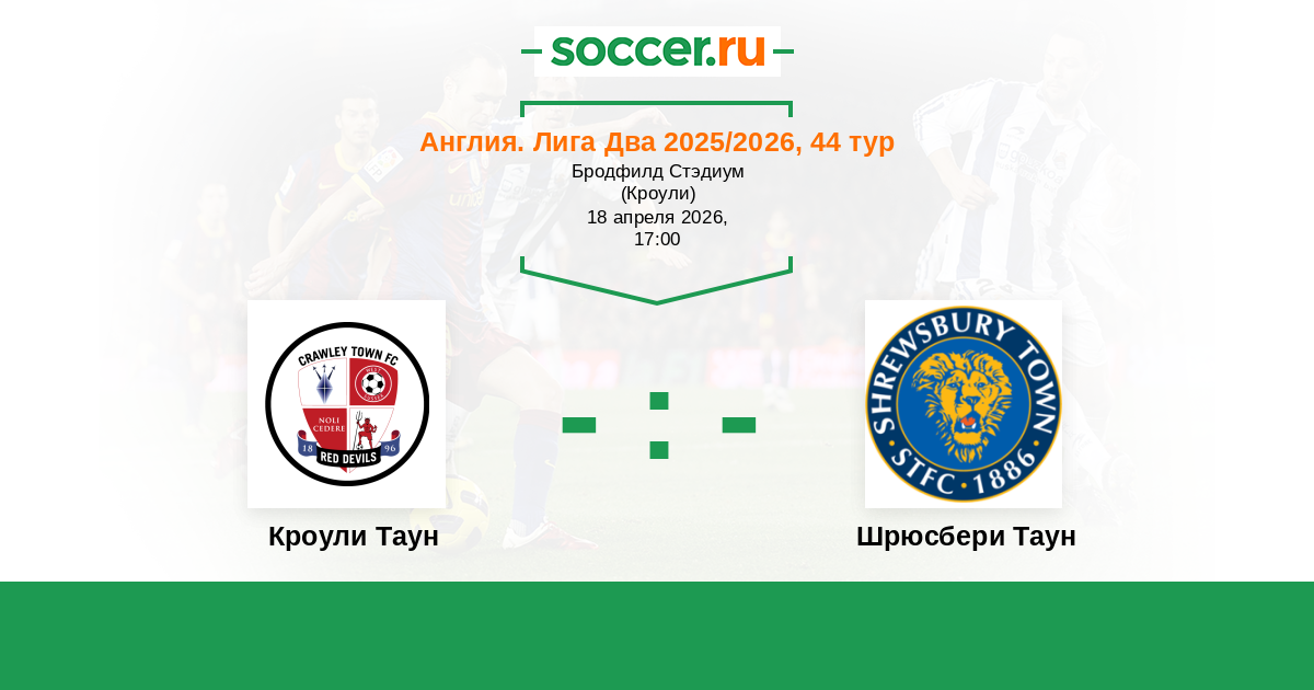 | Шрюсбери Таун | 7:5 | 2:2 | 5:3 |