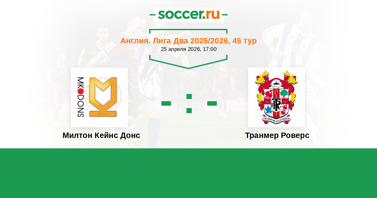| Милтон Кейнс Донс | Транмер Роверс | |