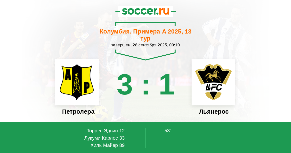 | Петролера | 1:0 | 0:0 | 1:0 |