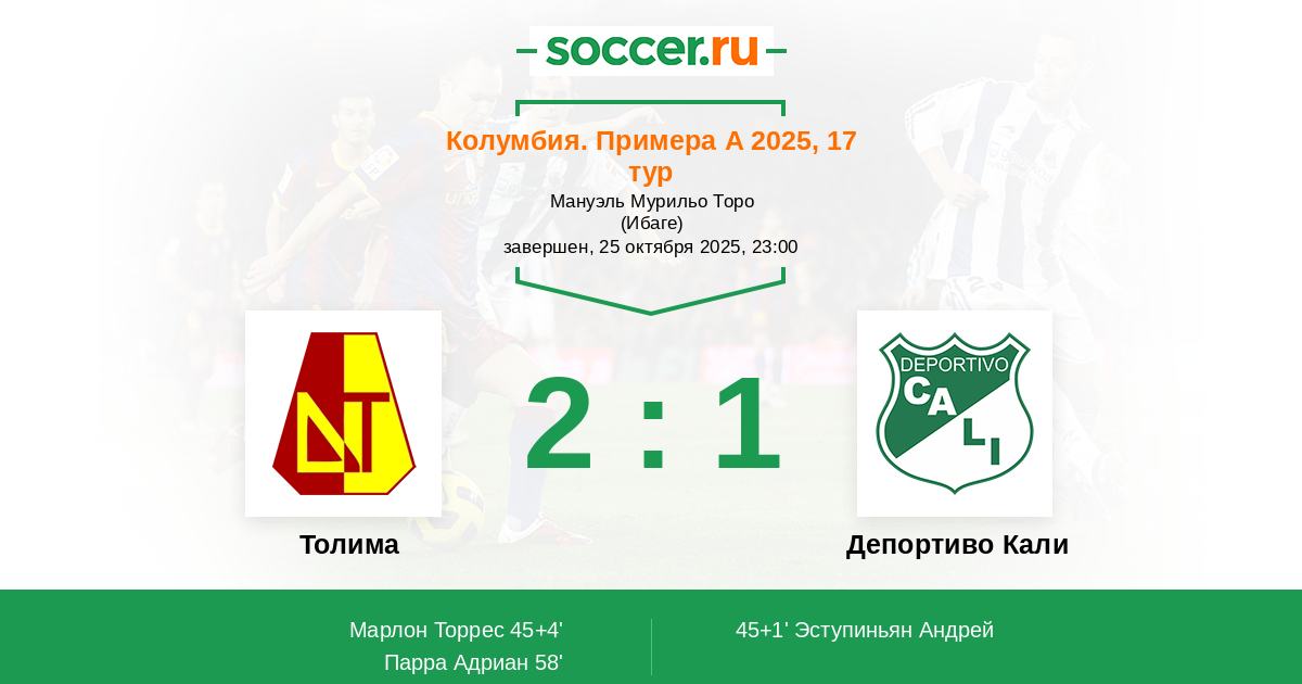 | Депортиво Кали | 68:94 | 34:38 | 34:56 |