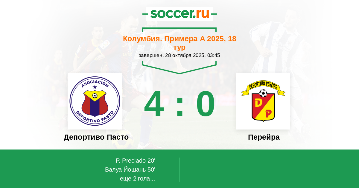 | Депортиво Пасто | 22:33 | 8:6 | 14:27 |