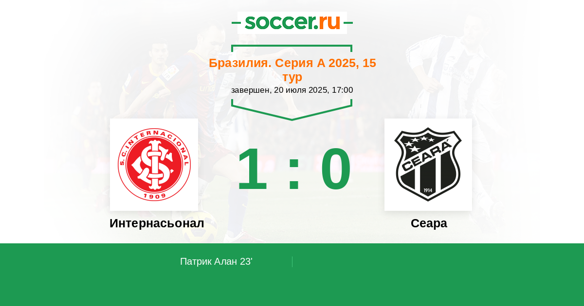 | Интернасьонал | 20:16 | 10:6 | 10:10 |