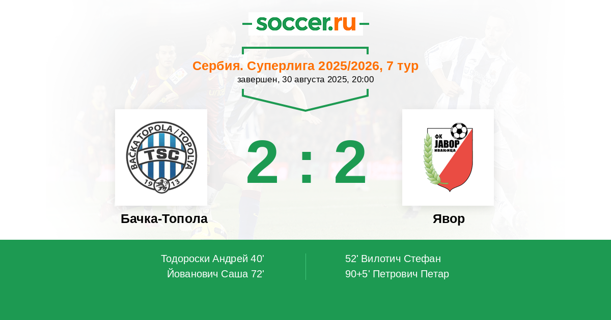 | Бачка-Топола | 28:11 | 18:5 | 10:6 |