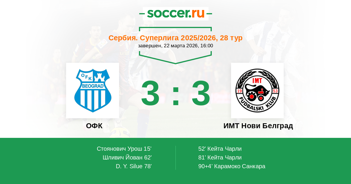| ОФК | ИМТ Нови Белград | |