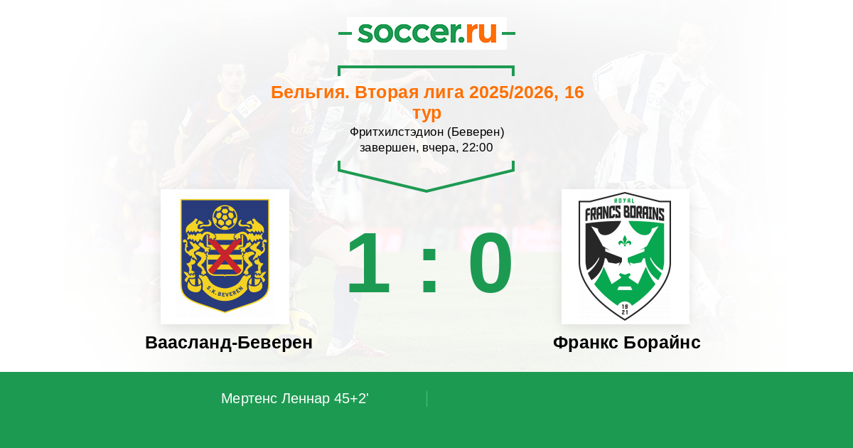 | Бельгия. 1B Про Лига | 4 | 2 | 1 | 1 |