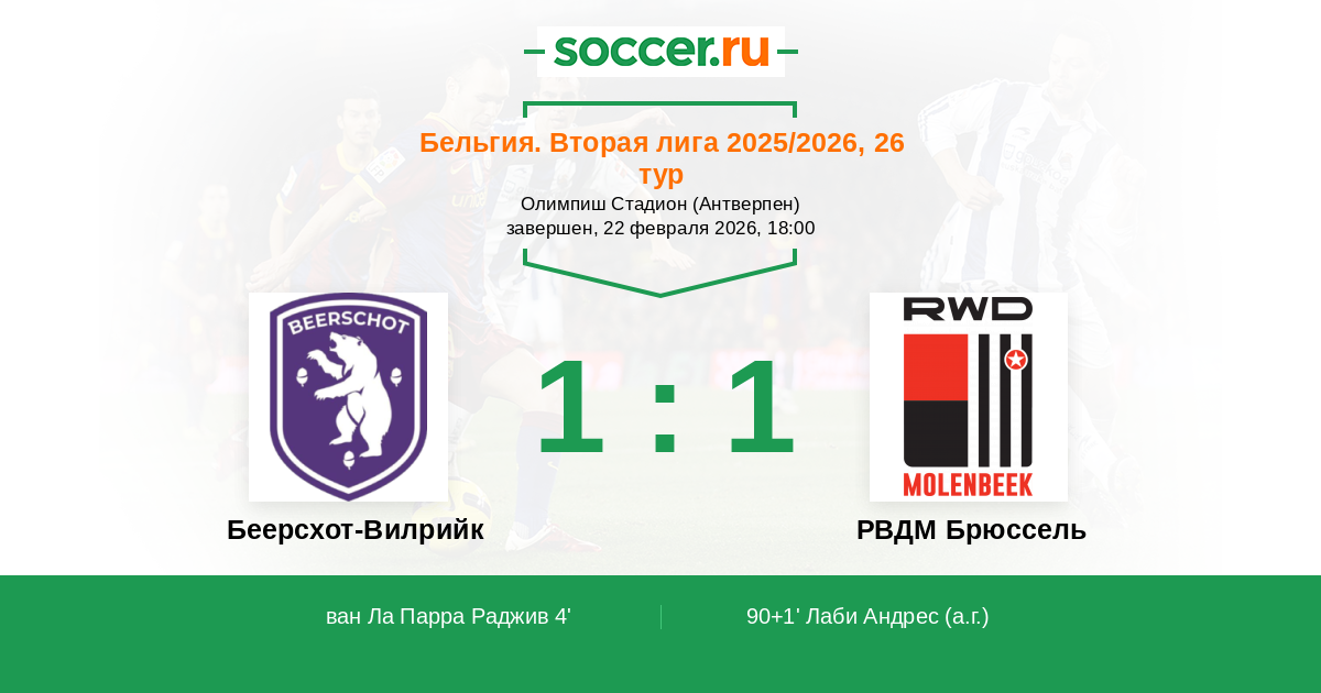 | Беерсхот-Вилрийк | РВДМ Брюссель | |