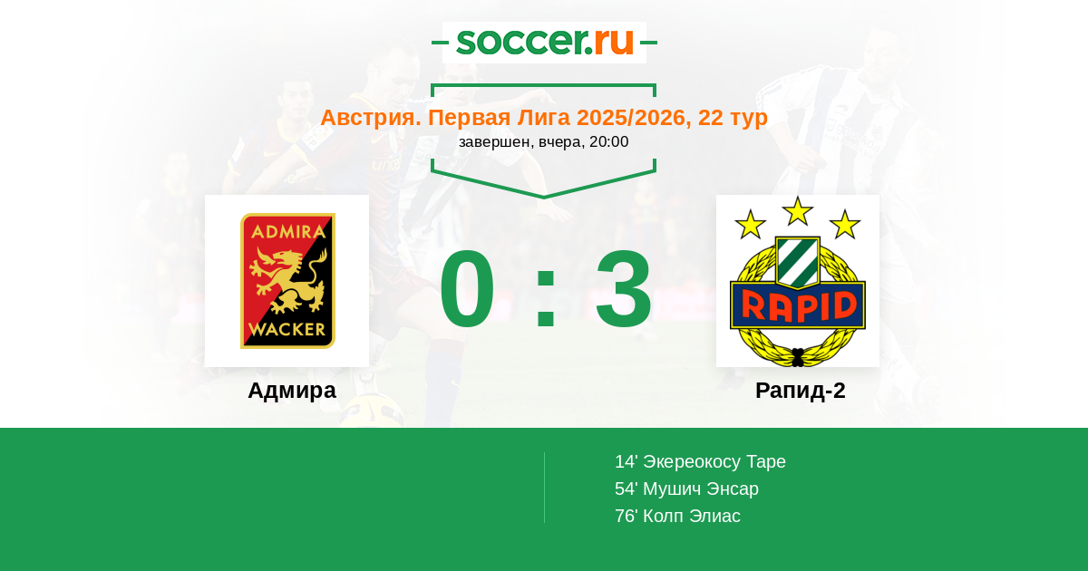 | Австрия. Первая Лига | 5 | 3 | 1 | 1 |
