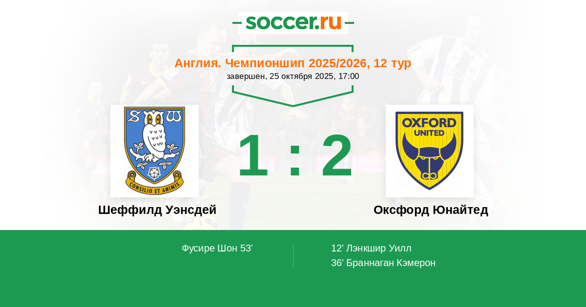 | Шеффилд Уэнсдей | Оксфорд Юнайтед | |