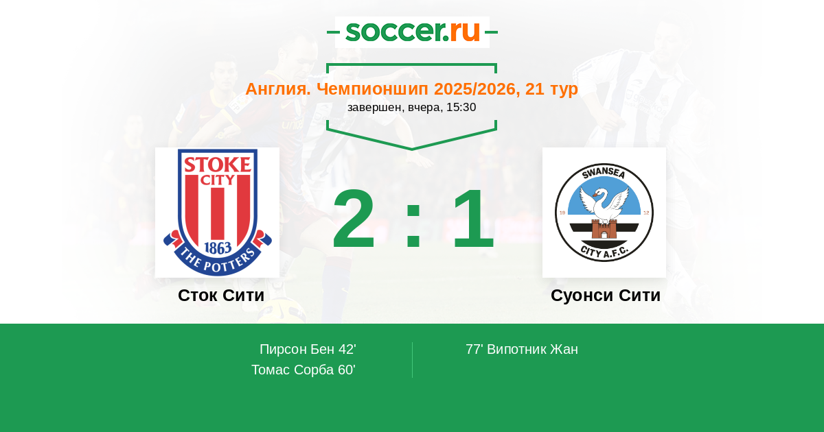 | Сток Сити | 50:46 | 32:16 | 18:30 |