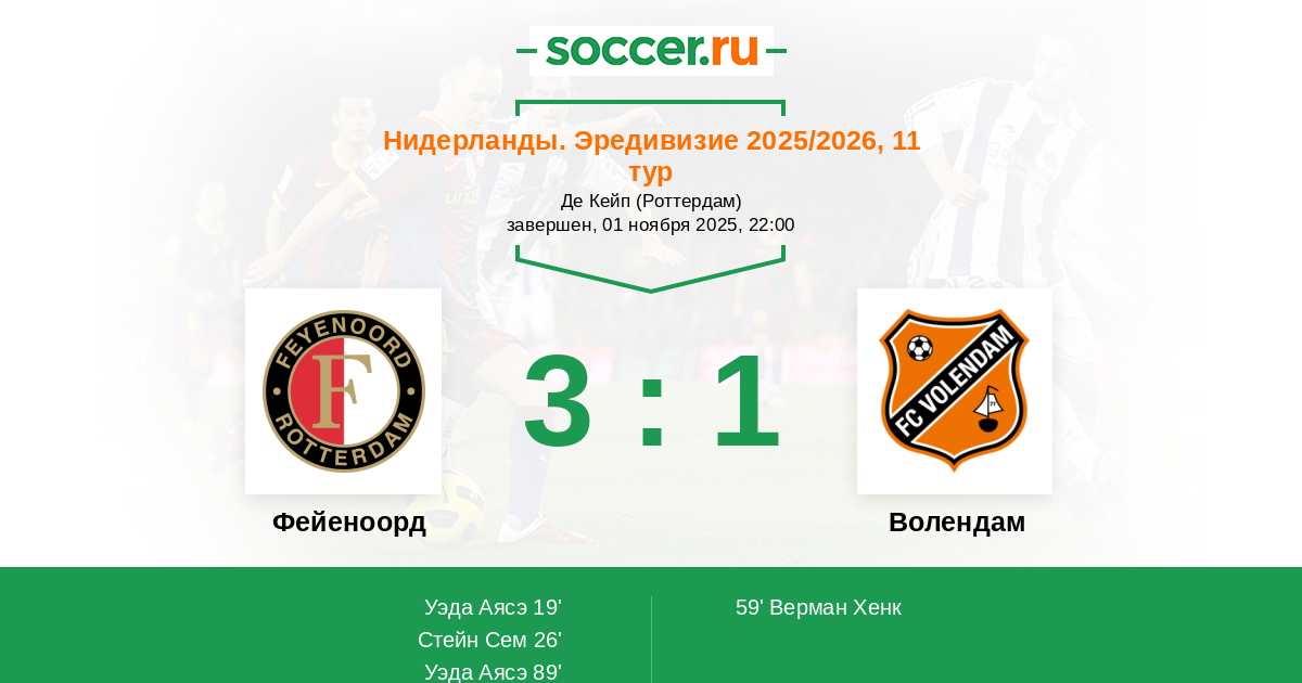 | Фейеноорд | Волендам | |