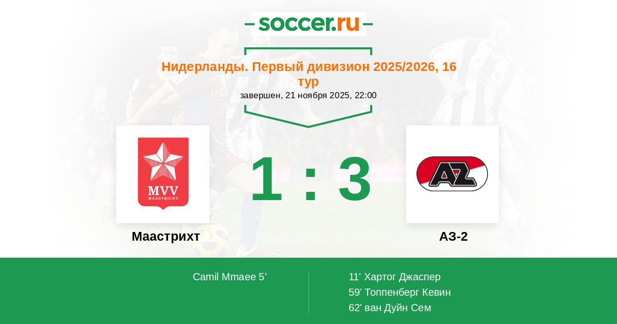 | Маастрихт | 31:28 | 14:10 | 17:18 |