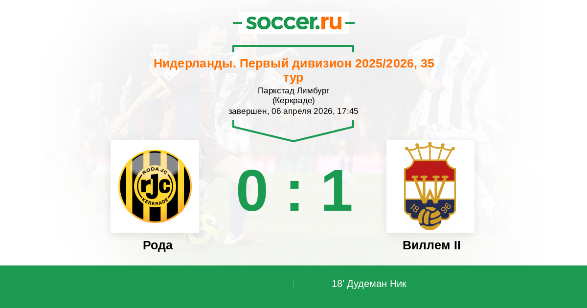 | Виллем II | 30:32 | 17:18 | 13:14 |