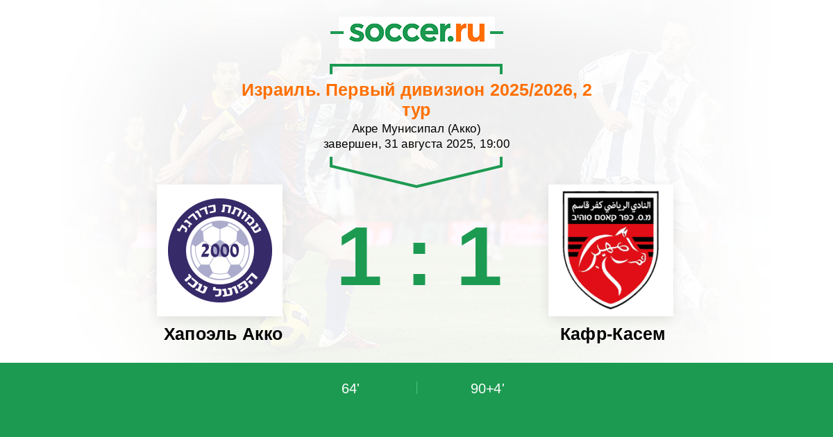 | Хапоэль Акко | Кафр-Касем | |