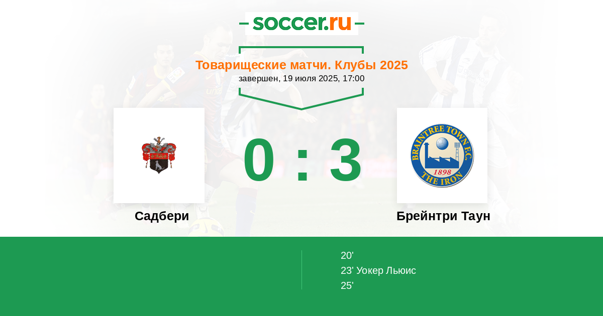 | Брейнтри Таун | 4:2 | 0:0 | 4:2 |