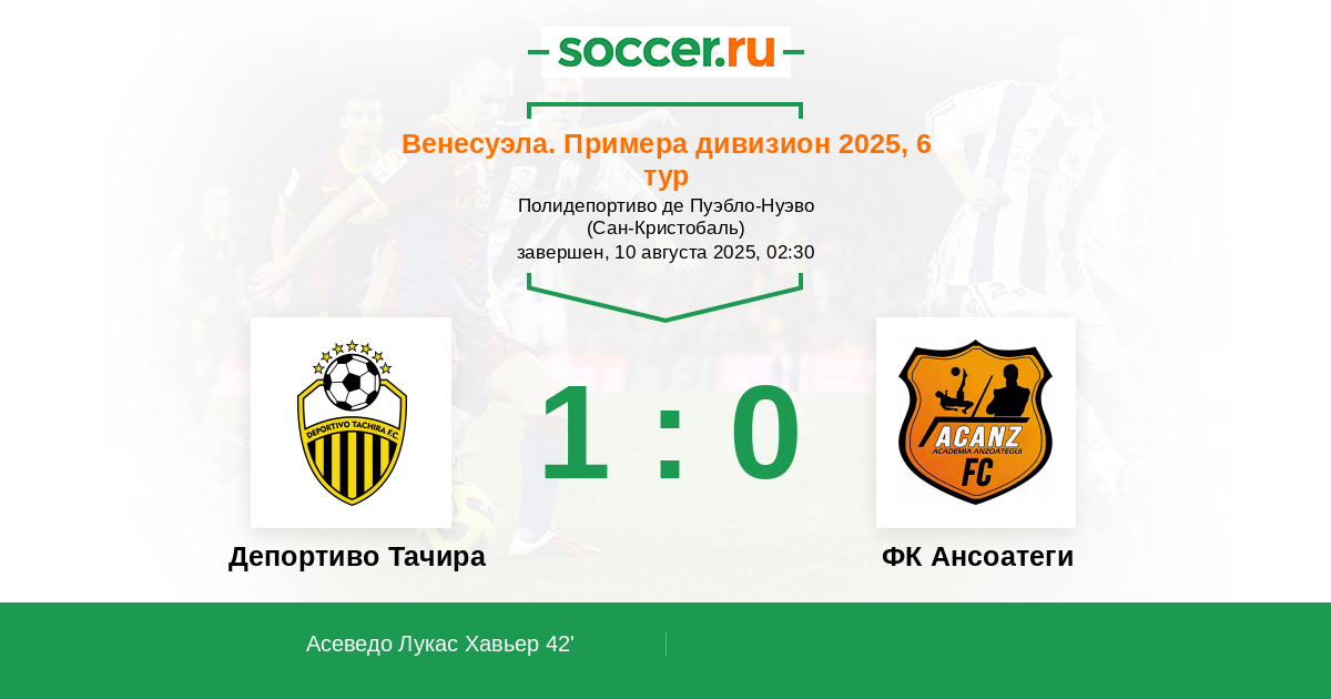 | ФК Ансоатеги | 1:3 | 0:0 | 1:3 |