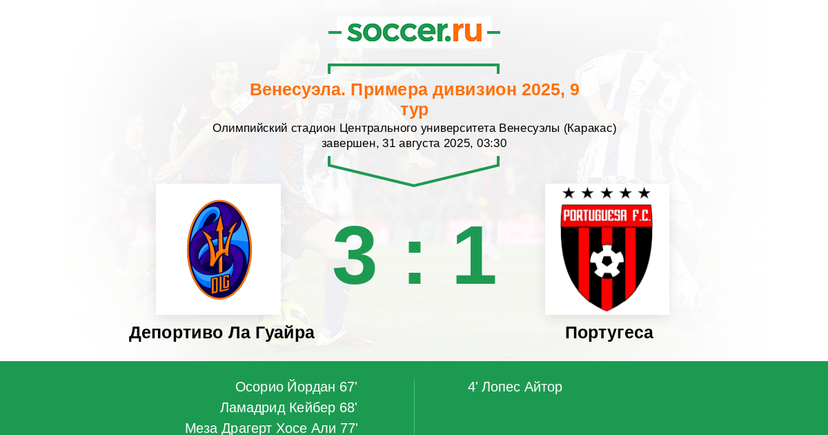 | Депортиво Ла Гуайра | 20:18 | 11:8 | 9:10 |