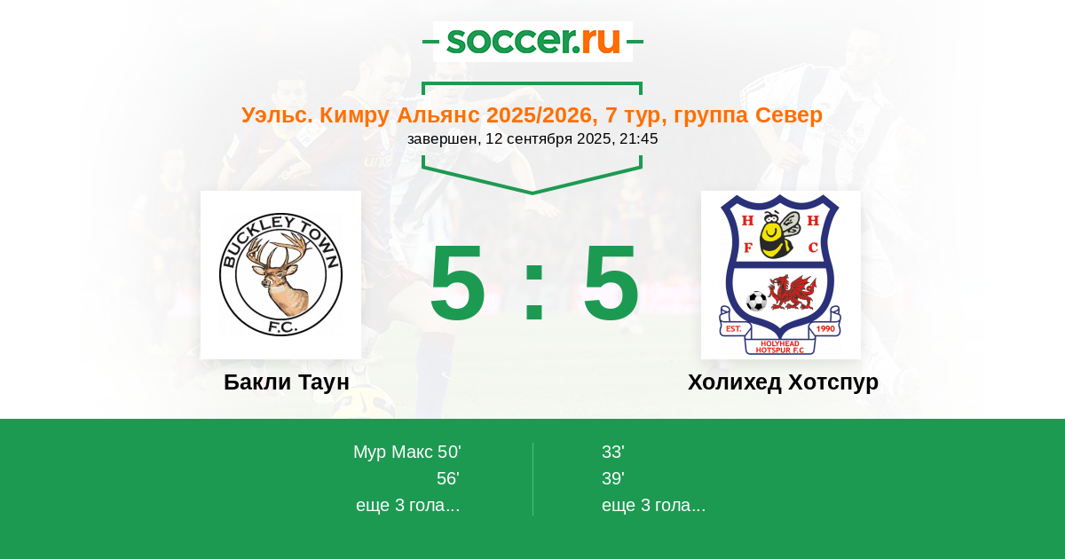 | Бакли Таун | Холихед Хотспур | |